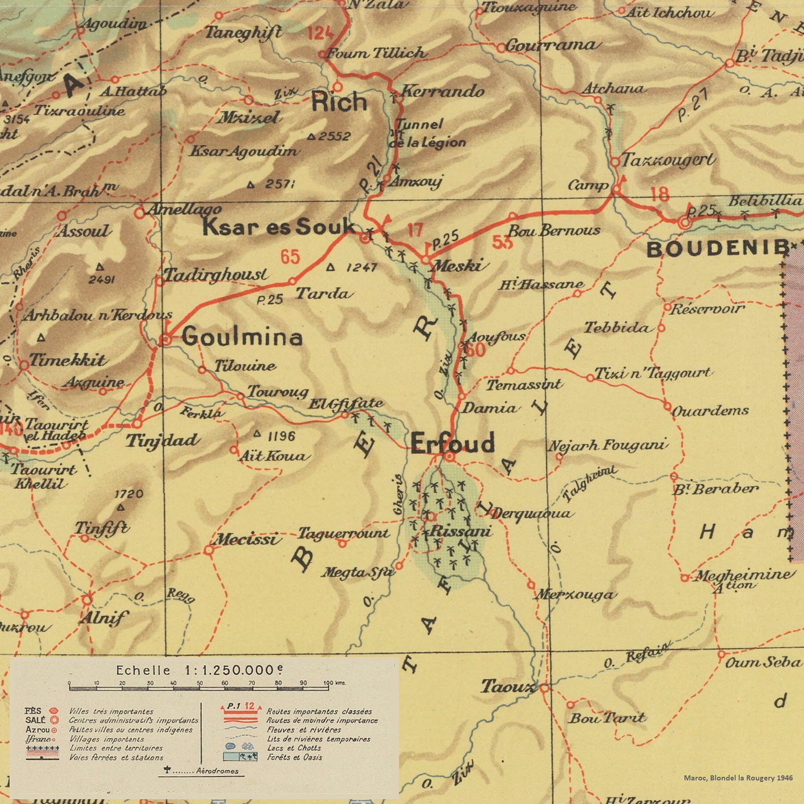 détail: Carte de Maroc, Blondel la Rougery (Paris), 1946 (Gallica)